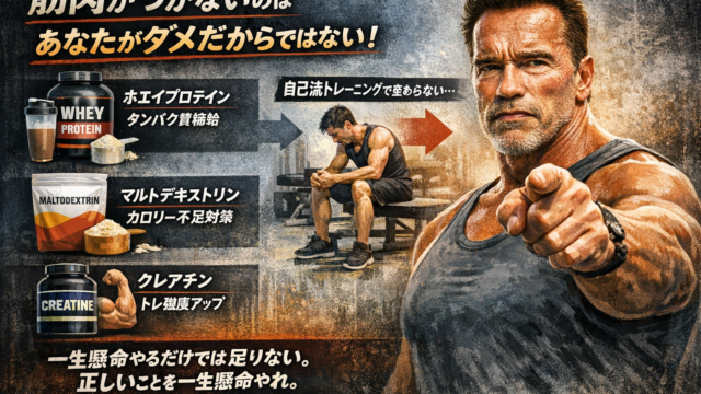 筋トレを続けているのに、「全然筋肉がつかない」「見た目が変わらない」そんな悩みを感じていませんか?実はこれ、あなたの努力不足が原因ではありません。筋トレしている人の9割が同じ落とし穴にハマっています。この記事では、筋肉がつかない本当の原因今...