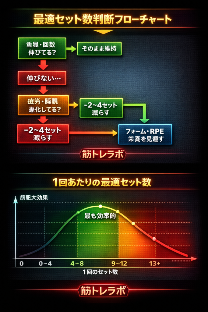 ※ 中級者の「10〜16セット」が最も失敗しにくいゾーン。
